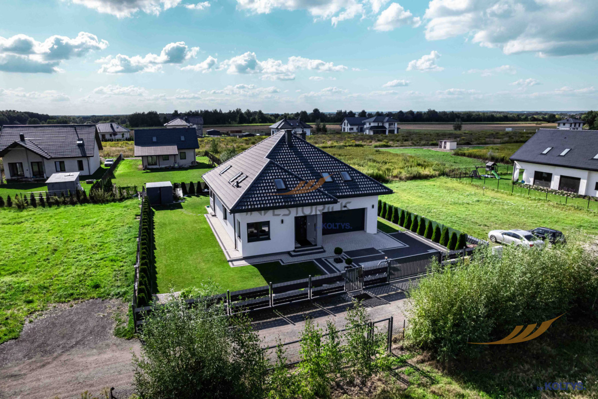 Dodatkowo, dom wyposażony jest w garaż, co stanowi wygodę dla mieszkańców. Kotłownia zapewnia efektywne ogrzewanie, a także dostęp do pomieszczenia gospodarczego.