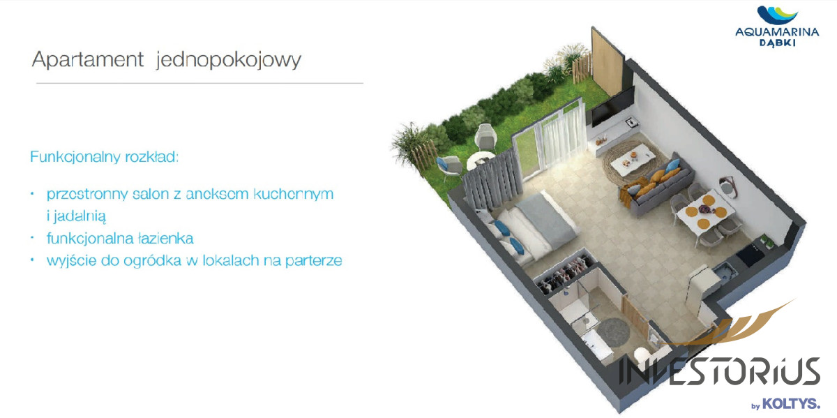 1 pokojowe studio z aneksem kuchennym w inwestycji Aquamarina Dewelopera Marina Invest.