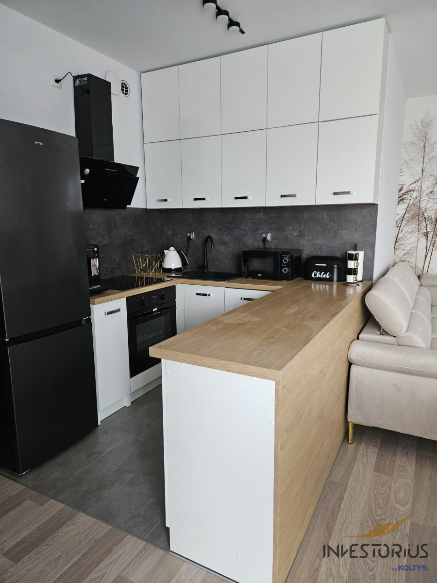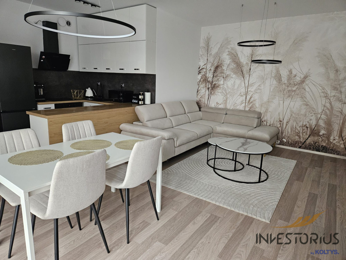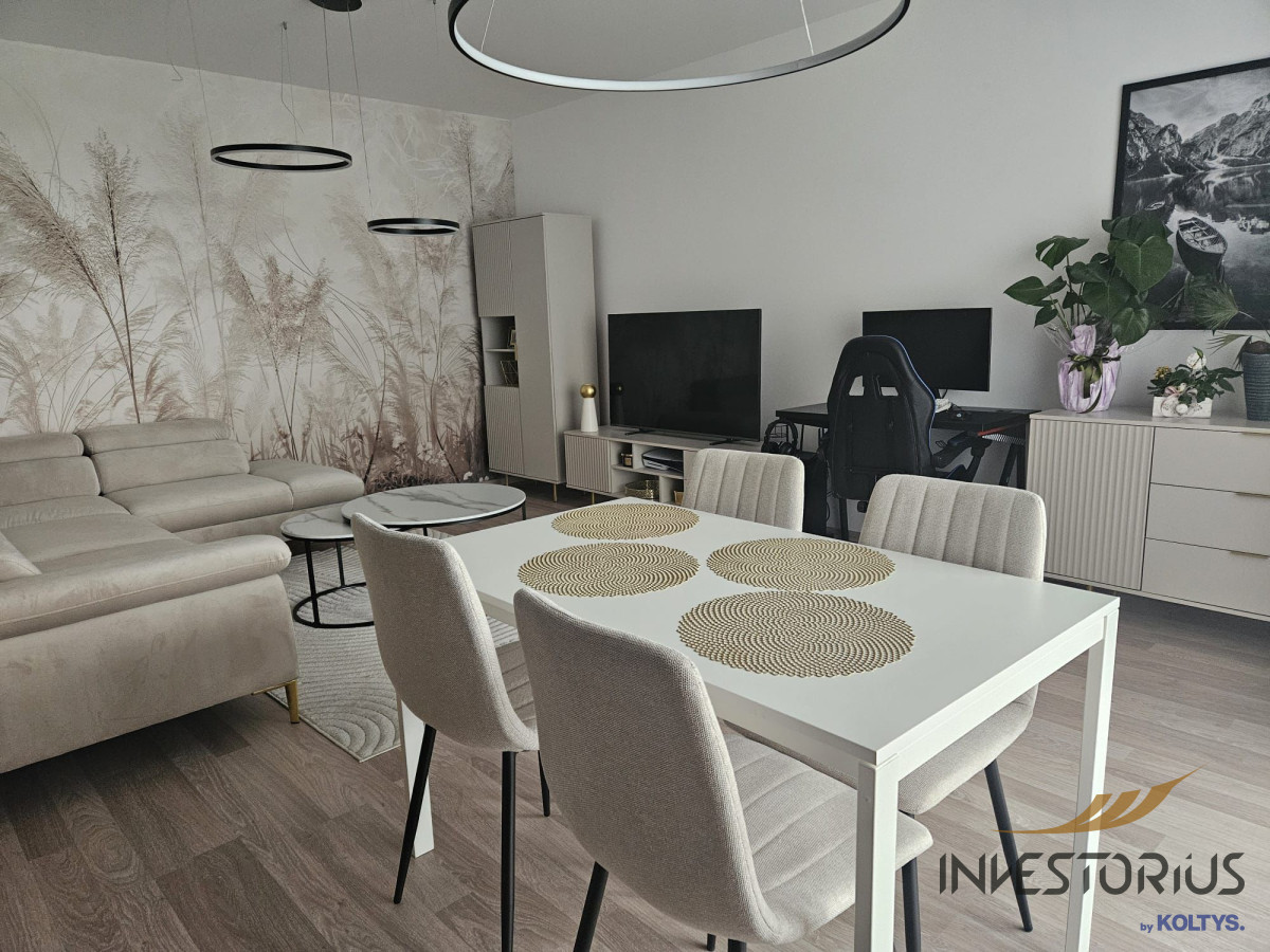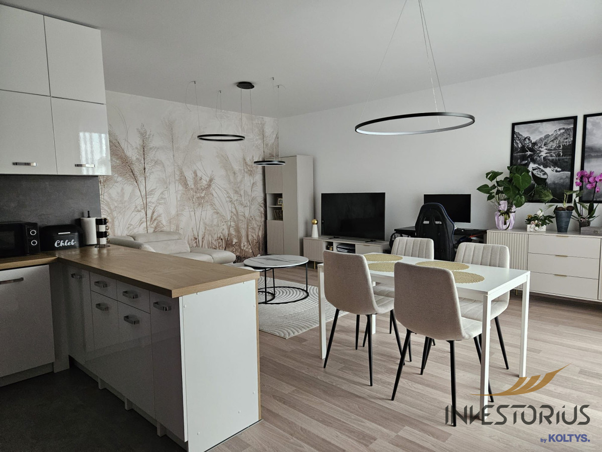 Po przekroczeniu progu wita Cię jasny salon z dużym oknem balkonowym. Wnętrze wypełnia naturalne światło, które ożywia każdy detal wykończenia. W otwartym aneksie kuchennym z łatwością przygotujesz rodzinne kolacje lub poranne śniadania bez pośpiechu.