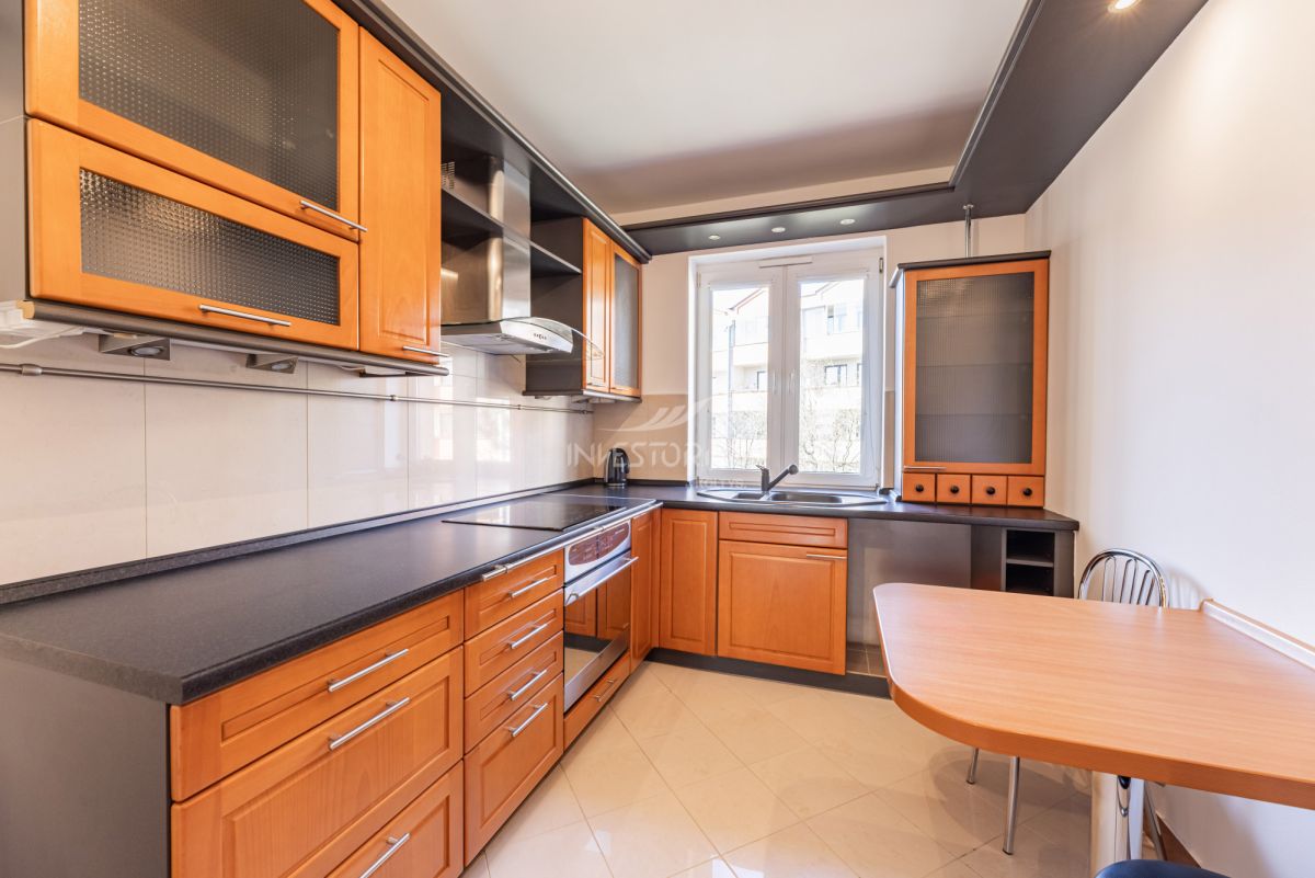 3 pokojowe mieszkanie z bardzo korzystnym układem. Mieszkanie w stanie do wprowadzenia, wymaga jedynie umeblowania. Dwie sypialnie, przestronny salon z wyjściem na duży 6 m2 balkon. Łazienka wyposażona w wannę oraz prysznic, oddzielna kuchnia, dodatkowo garderoba oraz schowek z możliwością przerobienia na WC. We wszystkich pokojach dębowy, olejowany parkiet w bardzo dobrym stanie, w pozostałych pomieszczeniach terakota.