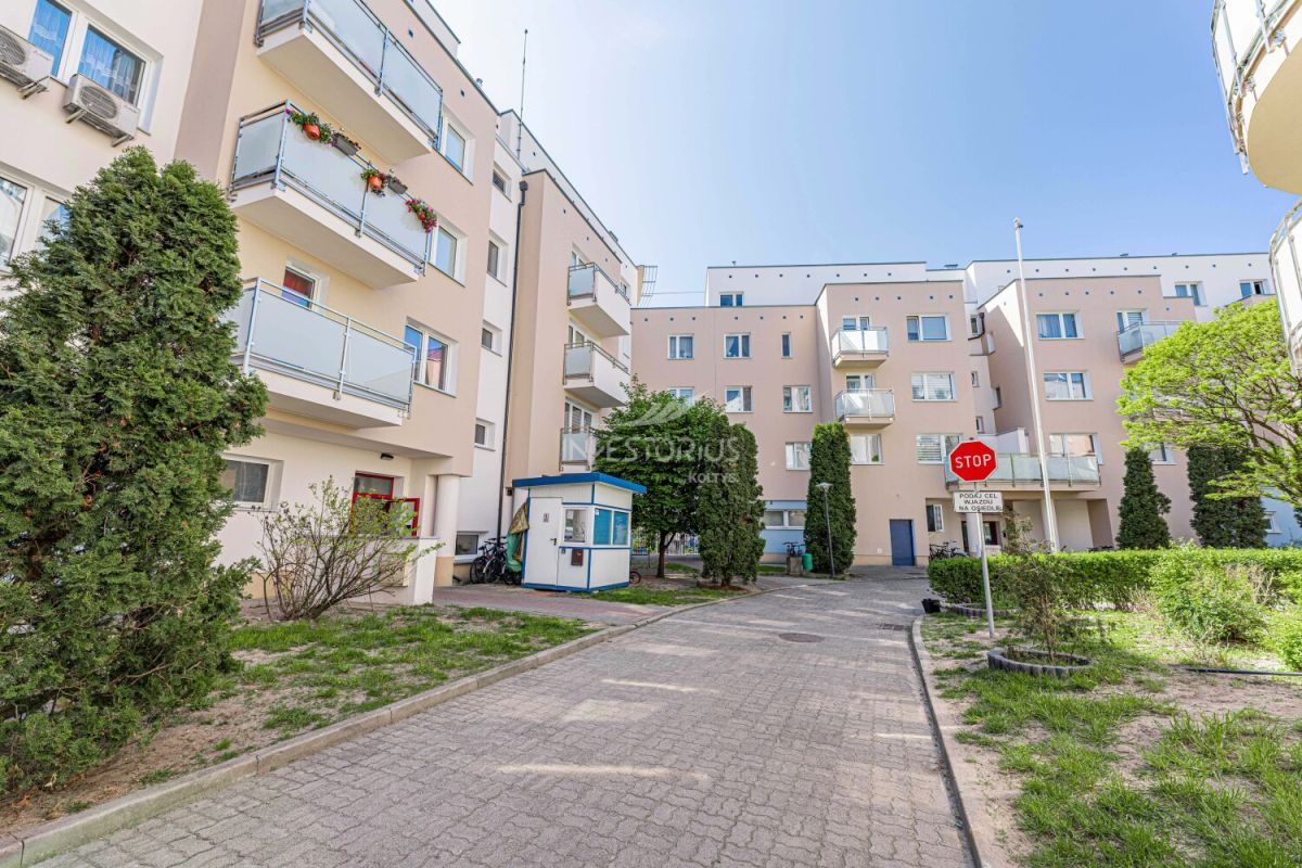Nieruchomość dwustronna wschód-zachód, z obu stron okna wychodzą na zielony dziedziniec/patio dzięki czemu w mieszkaniu panuje przyjemna cisza.