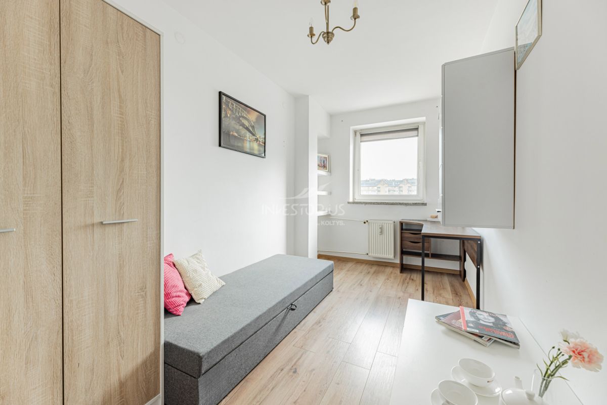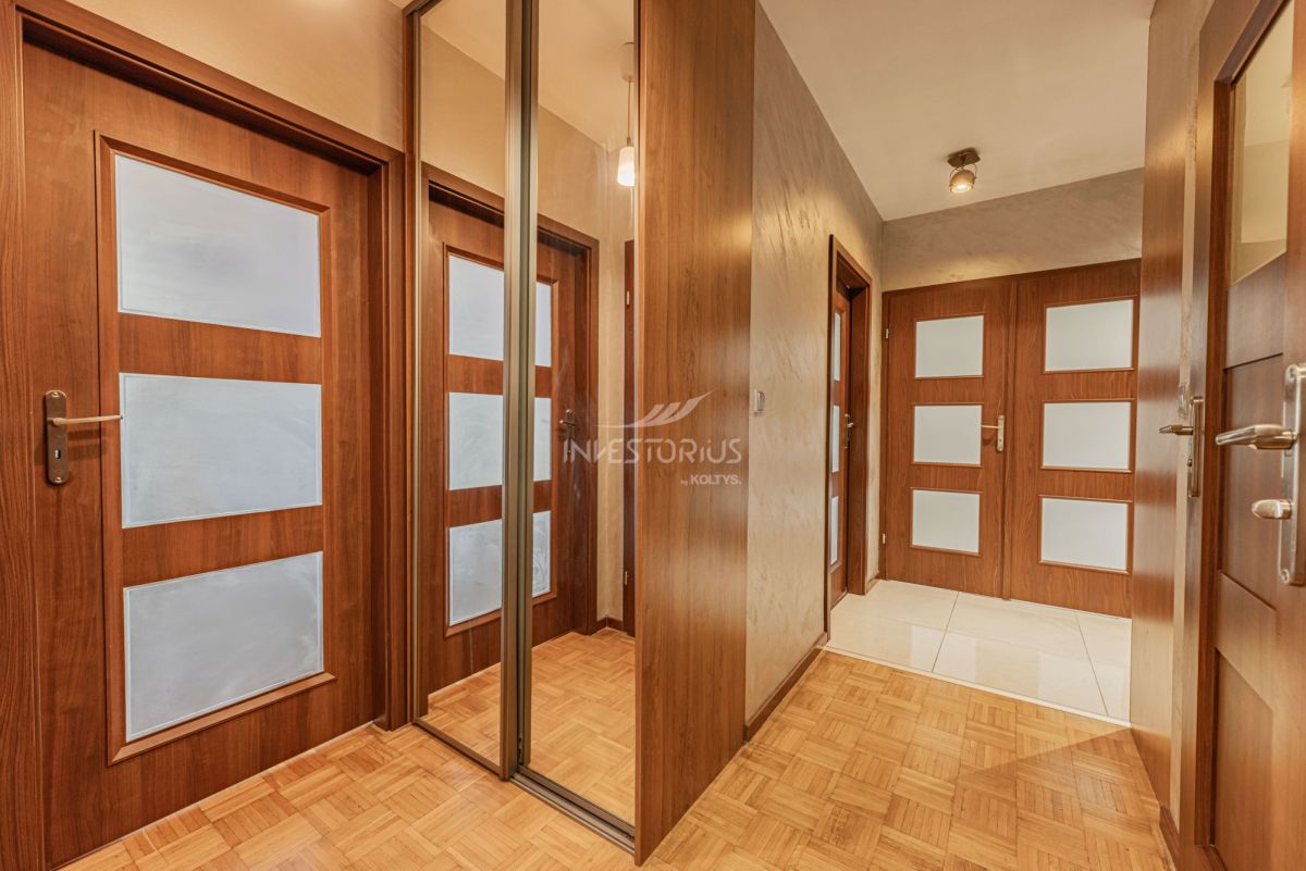 3 pokojowe mieszkanie z bardzo korzystnym układem. Mieszkanie w stanie do wprowadzenia/odświeżenia. Oddzielna toaleta oraz łazienka, dodatkowo garderoba. W 2020 roku mieszkanie przeszło generalny remont. Z klimatyzowanego salonu wyjście na przestronną i oszkloną loggię. W sypialni, salonie, garderobie oraz w korytarzu znajduje się oryginalny mozaikowy parkiet, w drugim pokoju panele, w łazience, toalecie i aneksie kuchennym terakota. Mieszkanie sprzedawane z pełnym wyposażeniem.